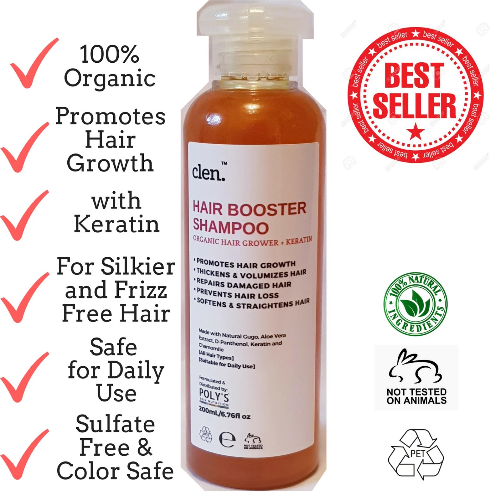 Hair Grower And Thickener Booster Shampoo By Clen With Keratin